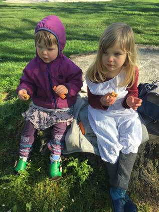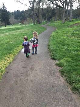 Low and behold something that might have set her off was totally cool for her because then we had a NEW story that we could tell Papa when we saw him after work! They were both a little tired and I knew we had another hour to walk home, so I started telling stories. First we told our new story about the time Lupine fell in the muddy-mud and then moved on to old favorites…The coast story (about when we went to the coast so that Papa could remove the old carpet in our house with a friend), The Birthday cake story (the story about when we went to the store to get ingredients for Papa’s birthday cake 3 years ago) and other favorites. Telling stories while you are outside can not only engage kids and keep them moving when they are tired, but as you can see it provides a way for them to attach to the routine of being outside, anticipate things they might encounter and seek adventures.